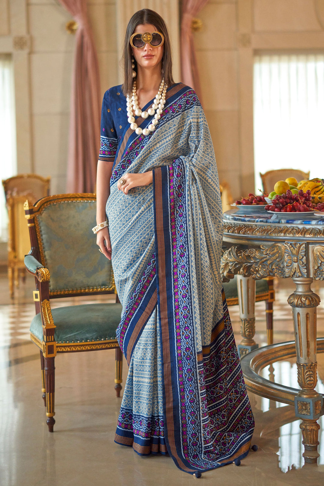 Art Silk Fabric Patola Printed Navy Blue Color Amazing Saree