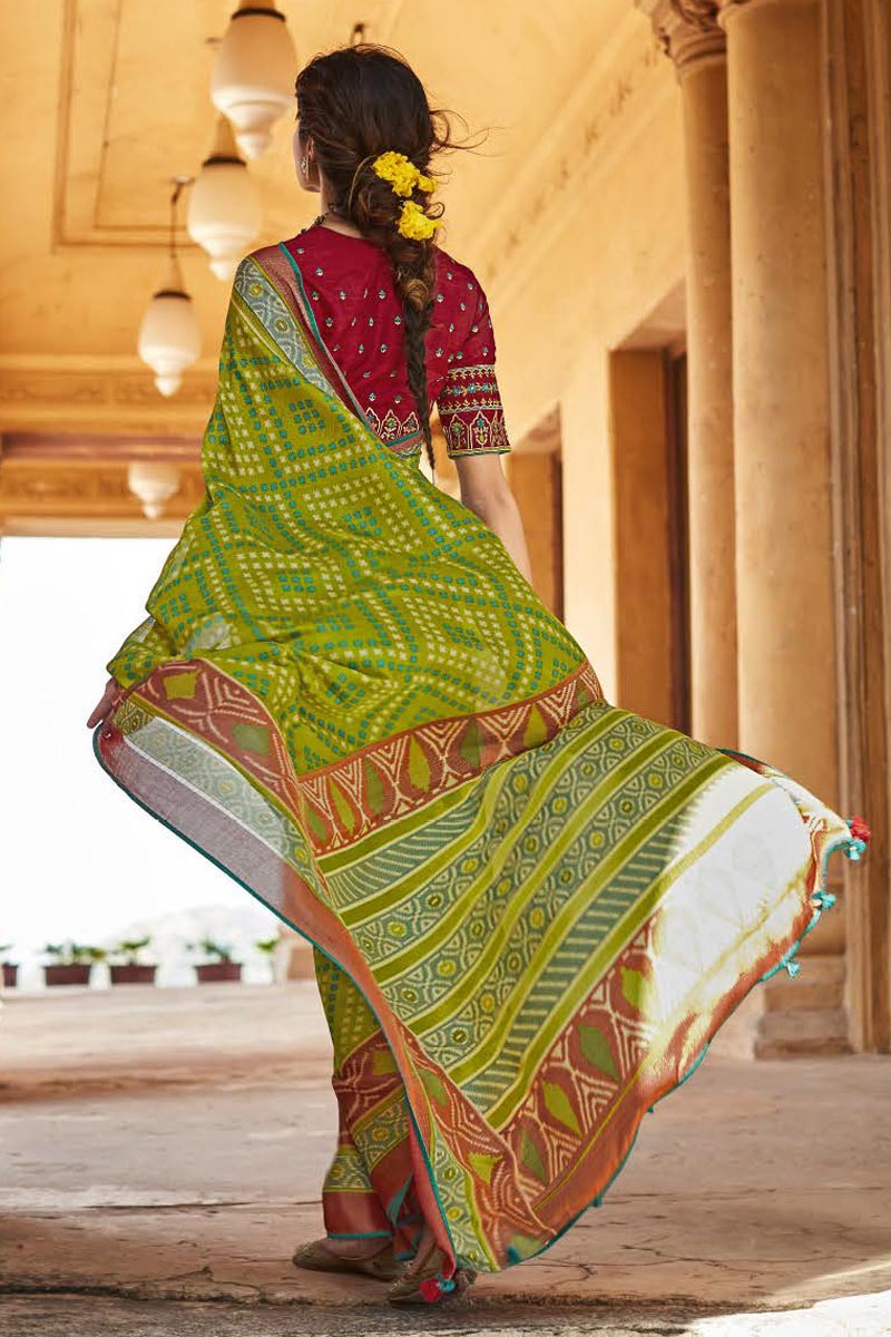 Art Silk Fabric Festive Wear Green Color Printed Saree