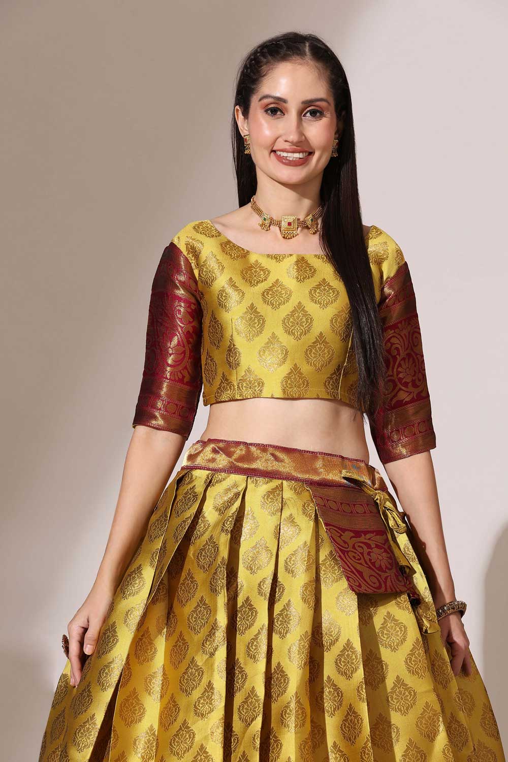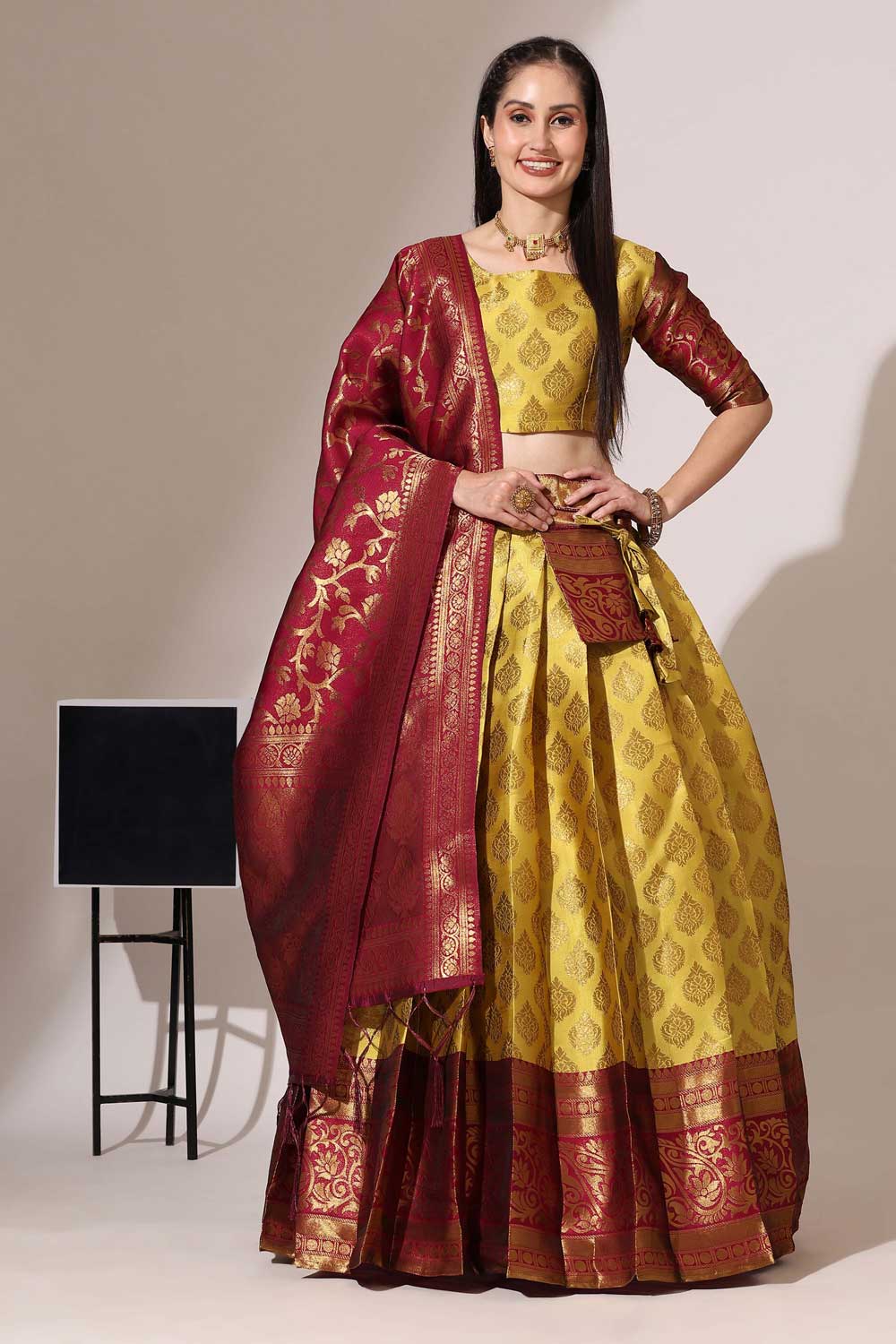 Art Silk Fabric Mustard Color Beatific Look Lehenga Choli