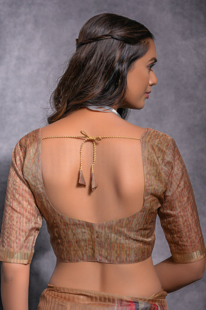 Brown Pure Linen Zari Pattern Printed Saree