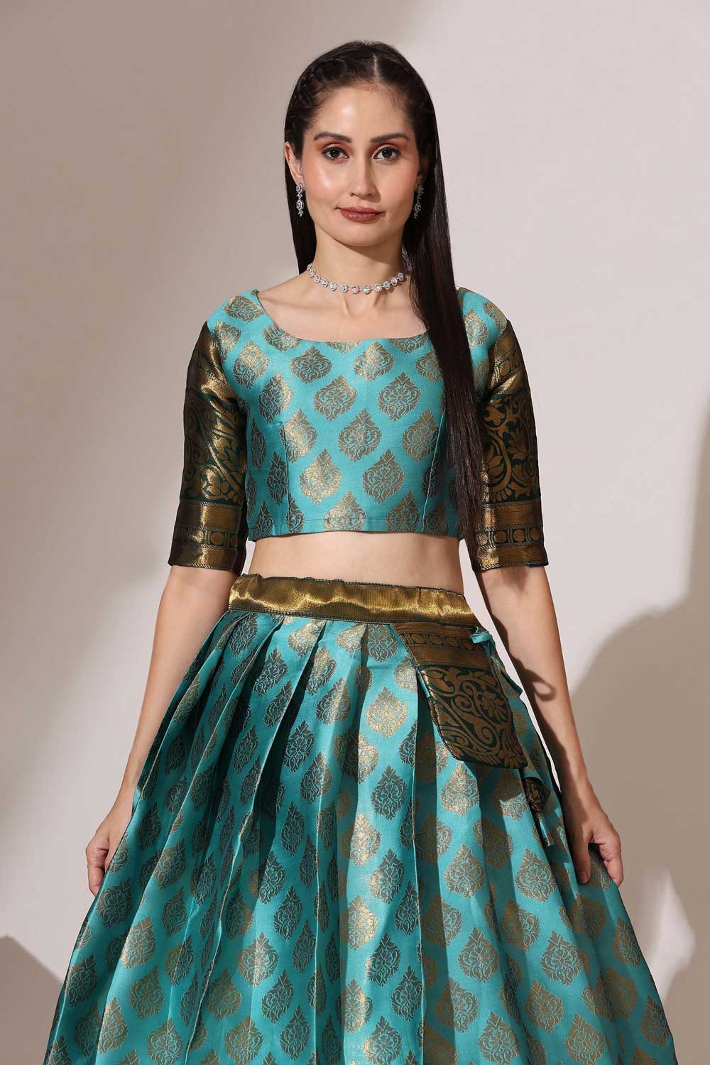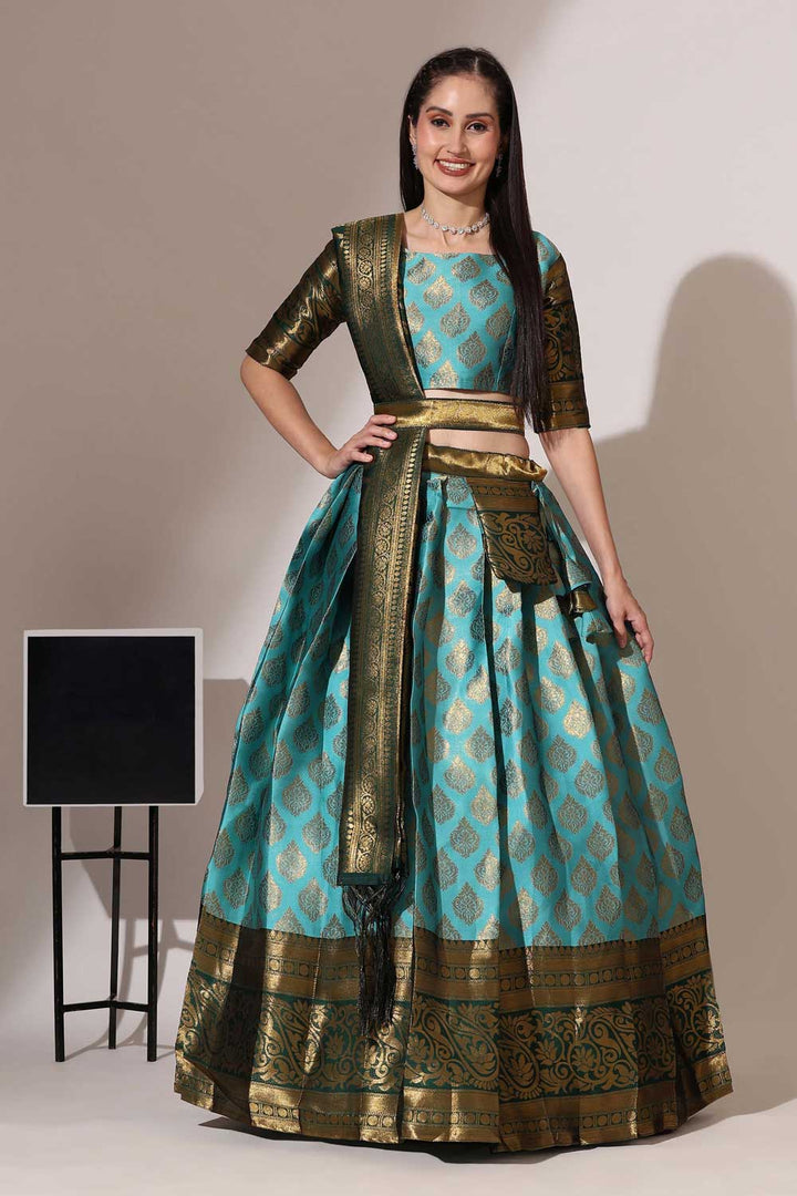 Cyan Color Art Silk Fabric Glamorous Look Lehenga Choli