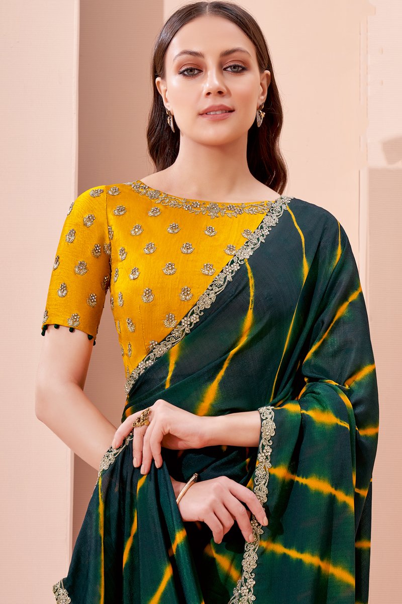 Dark Green Color Function Wear Designer Georgette Fabric Printed Saree