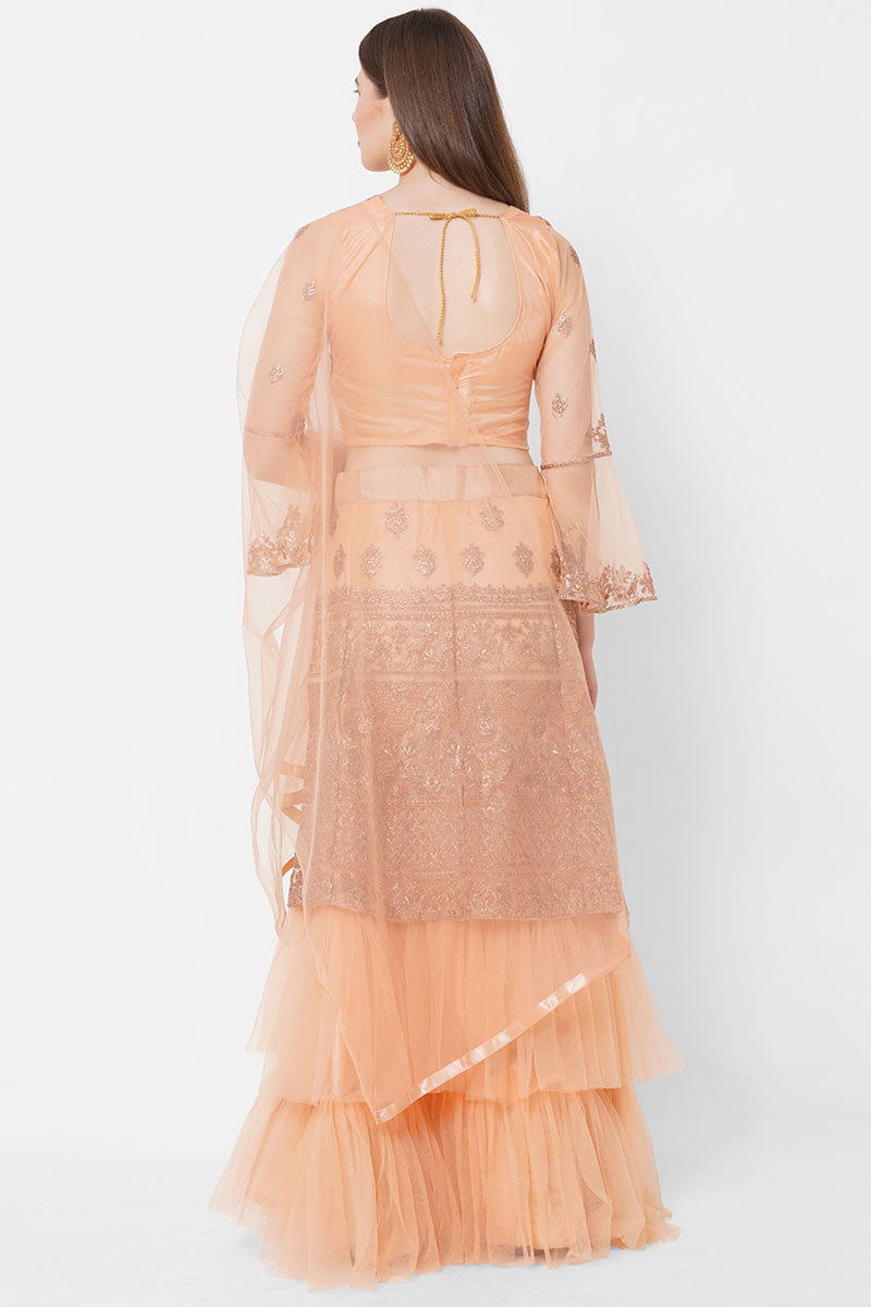 Orange Color Net Fabric Magnificent Embroidered Lehenga