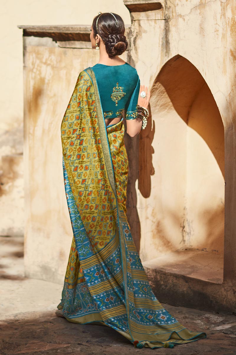 Party Wear Art Silk Fabric Printed Saree In Yellow Color