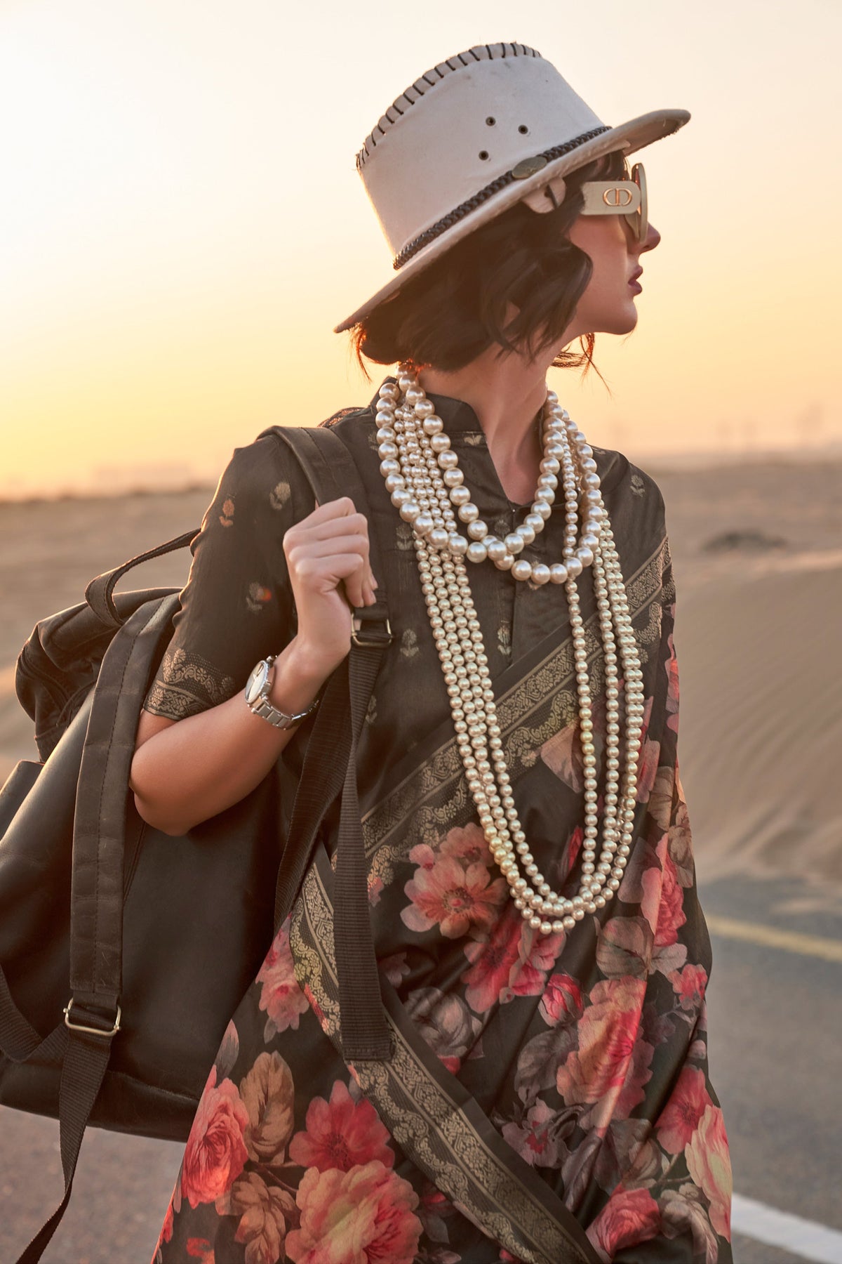 Phenomenal Floral Printed Brown Color Art Silk Saree