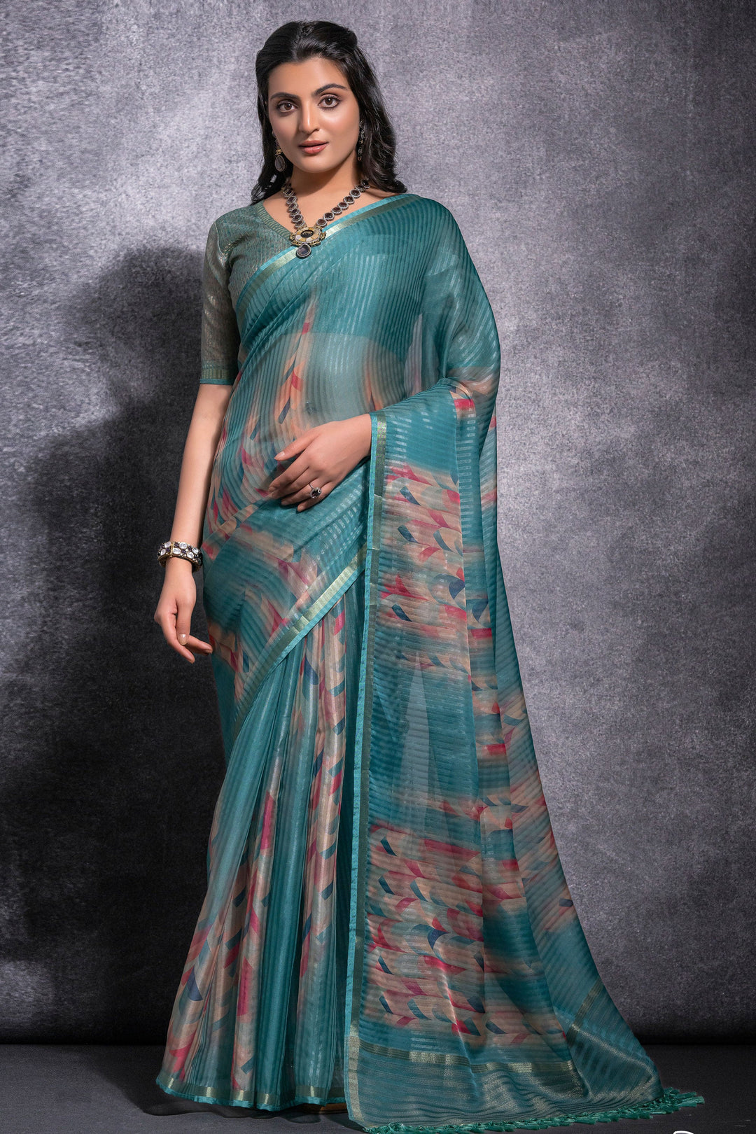 Enhance your ethnic wardrobe with our Printed Pure Linen Zari Pattern Saree with Blouse. Made from high-quality pure linen, this saree is designed to provide ultimate comfort and a graceful silhouette. The ornate zari pattern is artfully printed, lending a regal touch to your attire. Paired with a matching blouse, this saree is ready to wear and makes a lasting impression at any event. Perfect for traditional ceremonies, parties, or festive celebrations, this saree blends timeless elegance with modern appeal, ensuring you always step out in style.