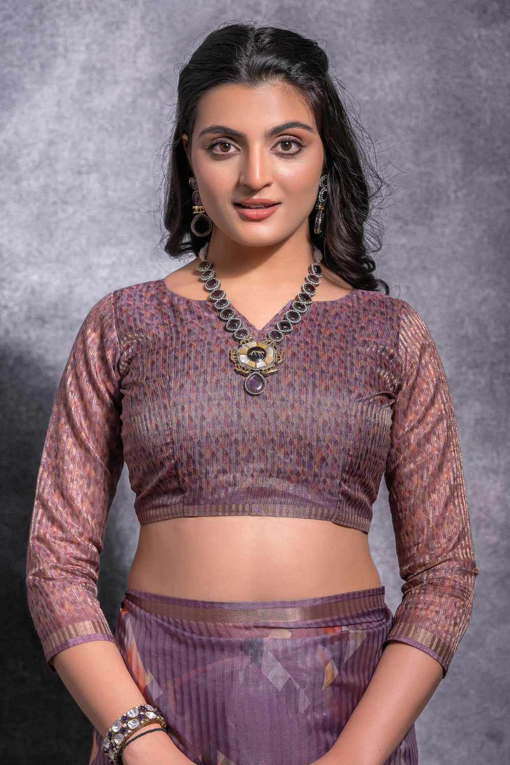 Enhance your ethnic wardrobe with our Printed Pure Linen Zari Pattern Saree with Blouse. Made from high-quality pure linen, this saree is designed to provide ultimate comfort and a graceful silhouette. The ornate zari pattern is artfully printed, lending a regal touch to your attire. Paired with a matching blouse, this saree is ready to wear and makes a lasting impression at any event. Perfect for traditional ceremonies, parties, or festive celebrations, this saree blends timeless elegance with modern appeal, ensuring you always step out in style.