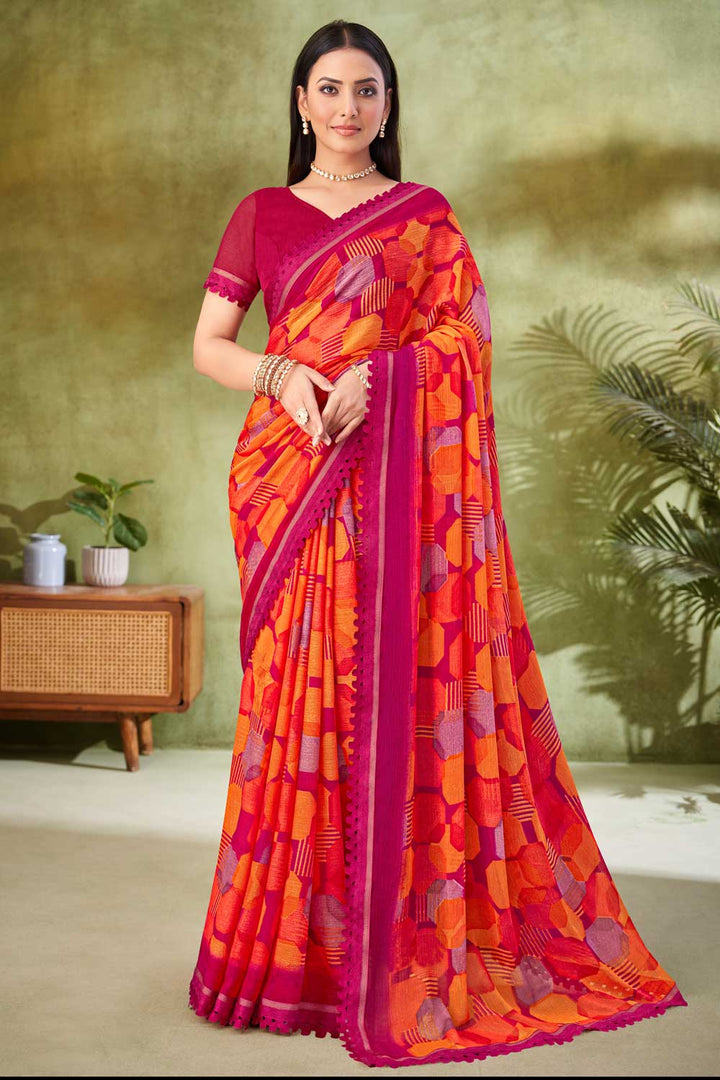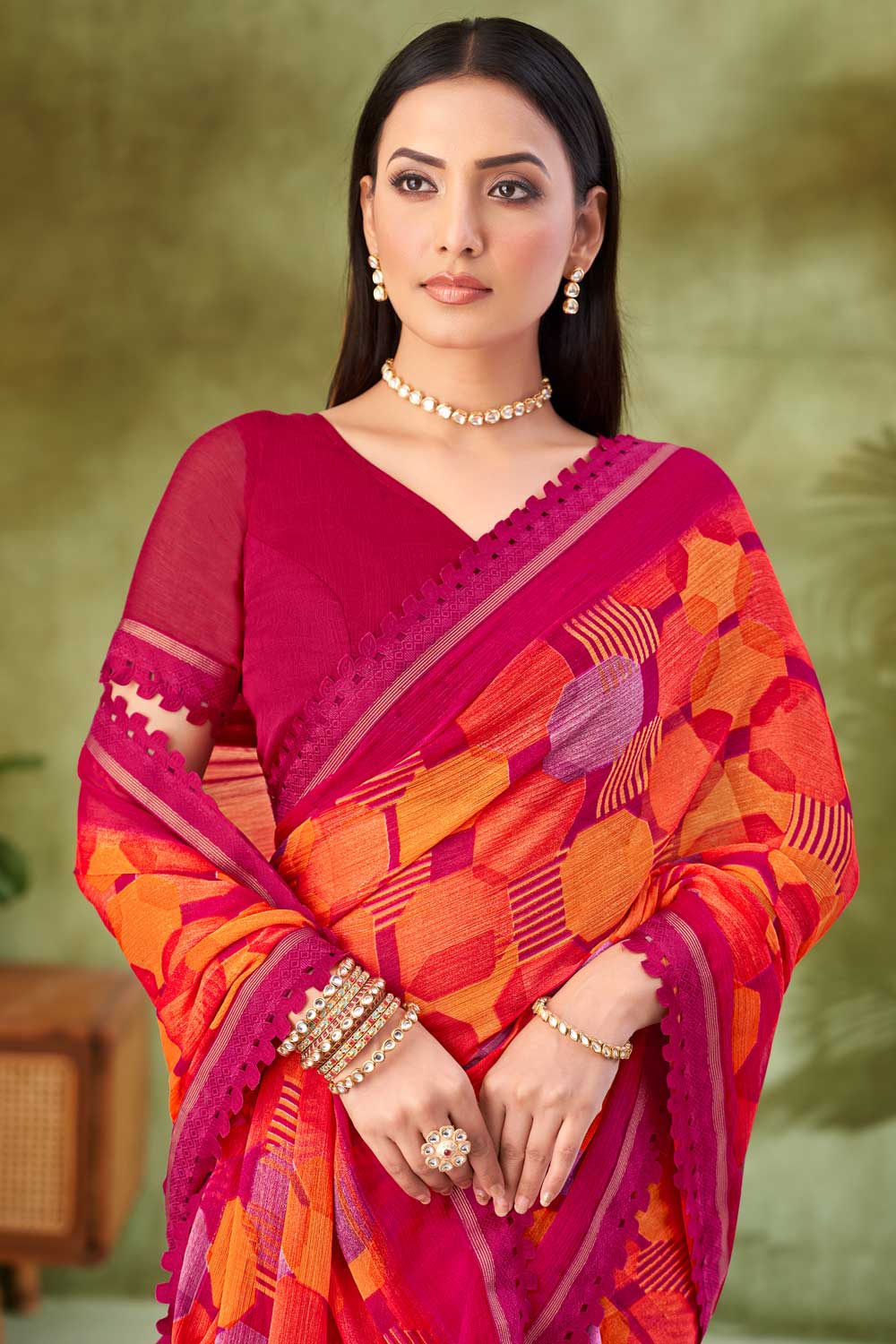 Rani Color Chiffon Fabric Beatific Printed Saree
