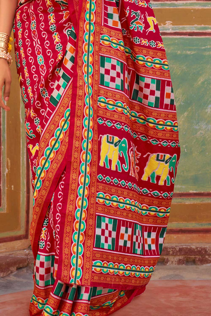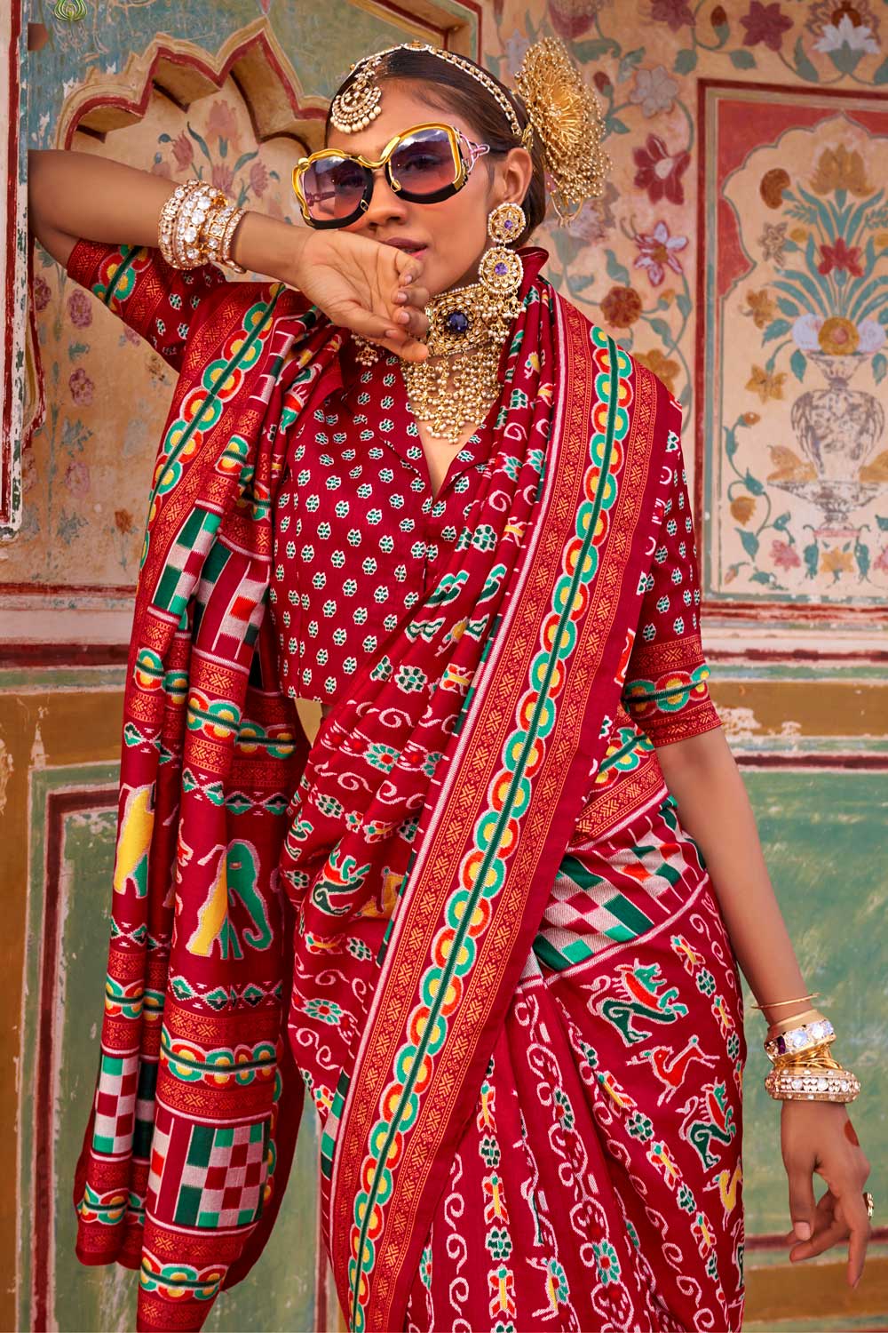 Elevate your style with our traditional silk saree, crafted from luxurious Sigma Silk with a vibrant printed design. For a personalized touch, complete the look with the matching unstitched blouse fabric. Note: Slight color variations may occur due to digital photography.
