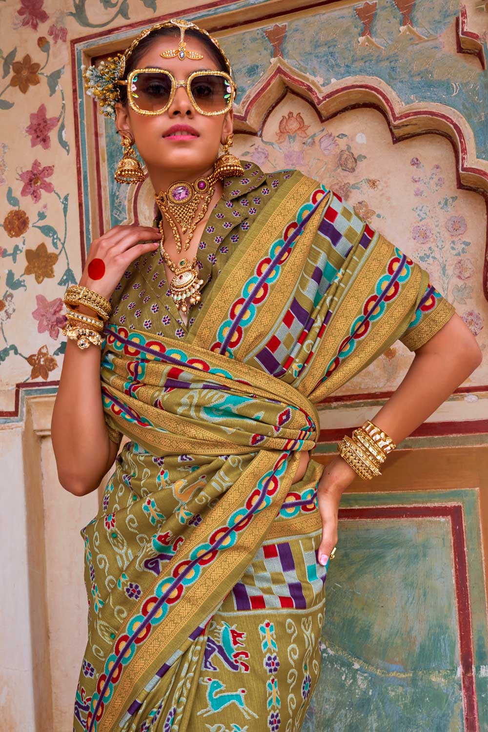 Elevate your style with our traditional silk saree, crafted from luxurious Sigma Silk with a vibrant printed design. For a personalized touch, complete the look with the matching unstitched blouse fabric. Note: Slight color variations may occur due to digital photography.