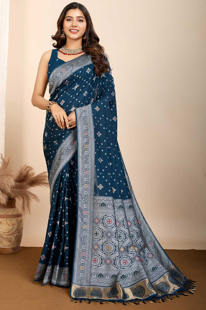 Teal Color Glorious Woven Meenakari Art Silk Saree